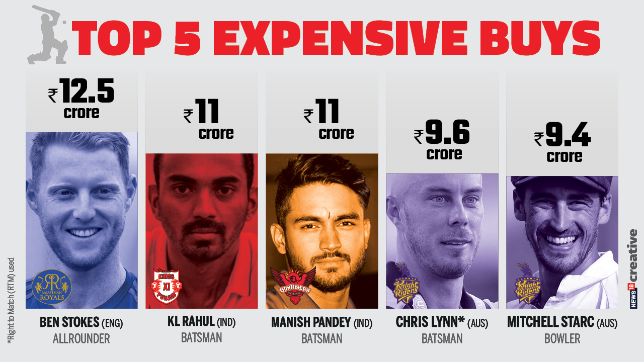 Australia pacer Mitchell Starc was bought for Rs 9.40 crore by Kolkata Knight Riders (KKR) while Kings XI Punjab (KXIP) got lucky getting Ashwin for Rs 7.60 crore. It was another big pay day for Stokes, who was bought for Rs 14.5 crore by Rising Pune SuperGiant during the last auctions, and proved to be a worthy buy with his all-round performances taking the team to the final.