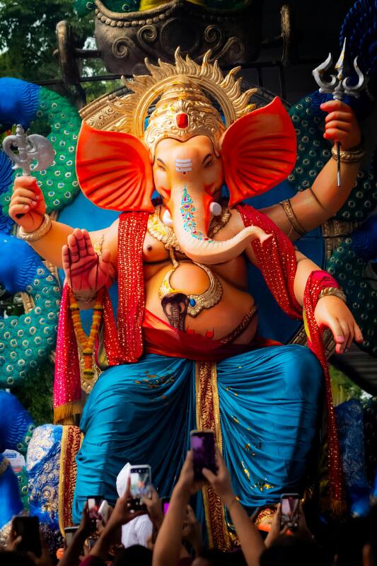 Day 10 color is Peacock Green, symbolizing peace, gratitude, and hope. Devotees wear it while bidding farewell to Lord Ganesha, praying for His return with greater blessings next year.
