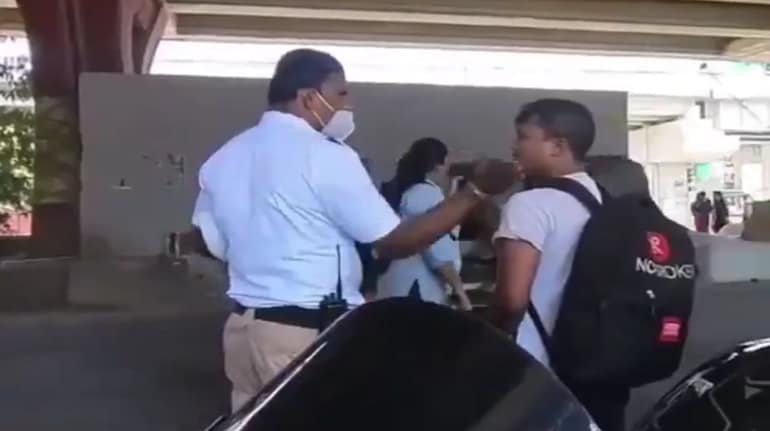 The clip, allegedly recorded by a bystander, shows the officer hitting the rider at an unknown location in Bengaluru. The reason for the argument is not clear.