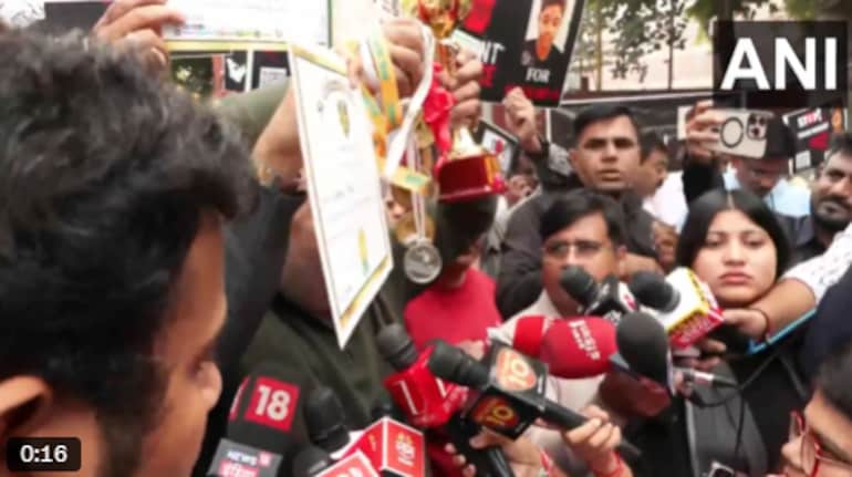 #WATCH | Delhi: Father of the student of St Columba's School (Ashok Place) who died allegedly by suicide on November 18, shows the certificates and medals awarded to his son by the school, as students and their parents continue to hold a protest over the incidentAccording to… pic.twitter.com/hoUue4mIew