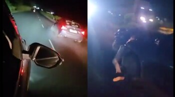 The 33-second clip of the incident, which has provoked widespread public anger, shows the car proceeding at speed with the mangled motorcycle visibly wedged on its bonnet. During the ordeal, one of the victims can be seen falling from the bike, with his hand appearing to go under the car’s wheels.