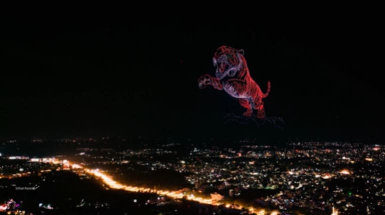 The show featured nearly 3,000 drones lighting up the night sky with dazzling patterns and breathtaking visuals. The highlight of the evening was a giant artwork of a tiger, created in the air by 2,983 drones.