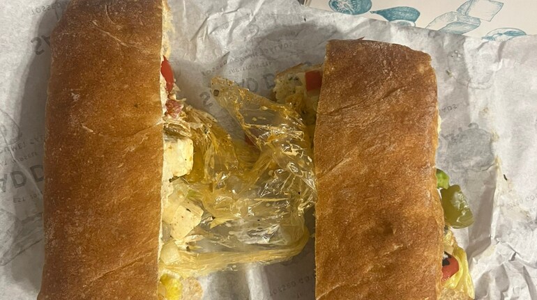 A resident in Noida recently claimed that found a plastic glove inside a sandwich he ordered through food delivery platform Zomato from a well-known restaurant chain in the city.