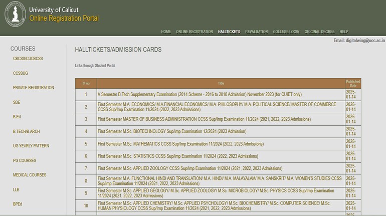 The University of Calicut (UOC) has released the hall tickets for various undergraduate and postgraduate courses' semester examinations. Students who wish to appear for the semester 1 and 5 exams can check their admit card on the university's official website, cupbonline.uoc.ac.in.