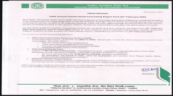 CBSE Board Exam 2025: The Central Board of Secondary Education (CBSE) has announced it will provide free psycho-social counseling services to Class X and XII students to help them manage exam-related stress. This initiative, which has been running for over 25 years, will be offered in two phases: before and during the exams, and after the results are declared.