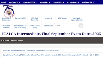 The Institute of Chartered Accountants of India (ICAI) has officially announced the dates for the Chartered Accountants (CA) Foundation, Intermediate, and Final examinations scheduled for September 2025. The examinations will be conducted at various centres across the country, depending on the number of candidates appearing from each centre.