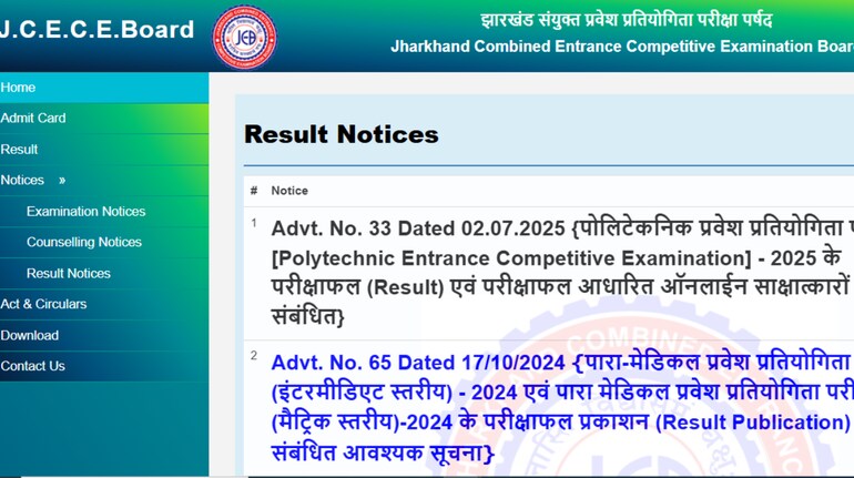 To view the result, candidates must visit the homepage of the JCECEB website, select the exam name under the "Result" column and follow the instructions to download the scorecard. In the interest of transparency, the board has also uploaded the scanned OMR answer sheets of all candidates. These can be downloaded from 3 July 2025 onwards.