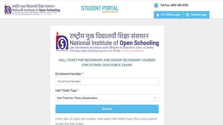 NIOS Hall Ticket 2024: The National Institute of Open Schooling (NIOS) has released the admit cards for the Secondary (Class 10) and Senior Secondary (Class 12) October and November 2024 theory exams. The NIOS Class 10 and Class 12 admit card link is available at the NIOS website – sdmis.nios.ac.in.