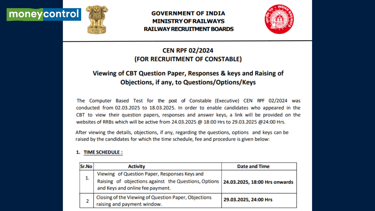 The Railway Recruitment Boards (RRBs) will release the official answer key for the RPF Constable 2025 examination today, March 24 at 6 PM. Candidates who appeared for the exam can access and download the answer key from the official RRB website.