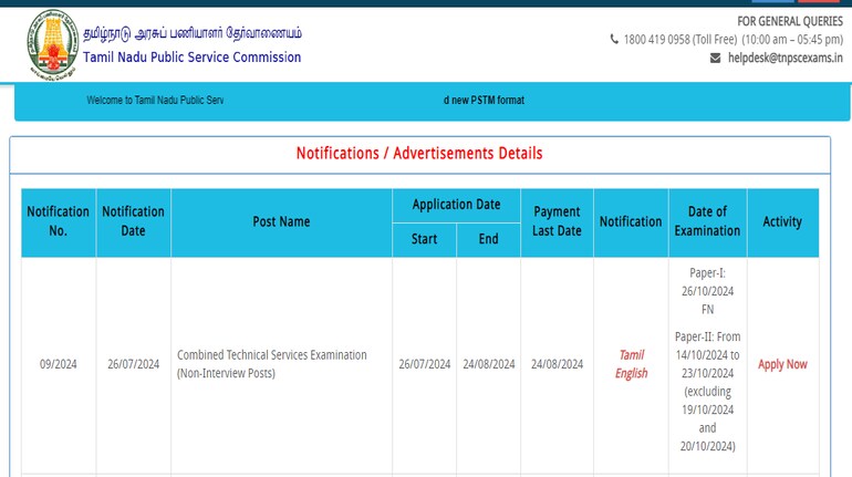 TNPSC Recruitment 2024: The Tamil Nadu Public Service Commission (TNPSC) has begun accepting applications for 654 technical positions through their online portal (tnpsc.gov.in). This recruitment drive falls under the Combined Technical Services Examination (Non-Interview Posts).