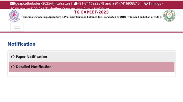 The Telangana Council for Higher Education (TGCHE) has released the TS EAMCET 2025 notification today, 20 February 2025. As per the official announcement, registrations for the exam will commence on 25 February and continue until 4 April 2025.