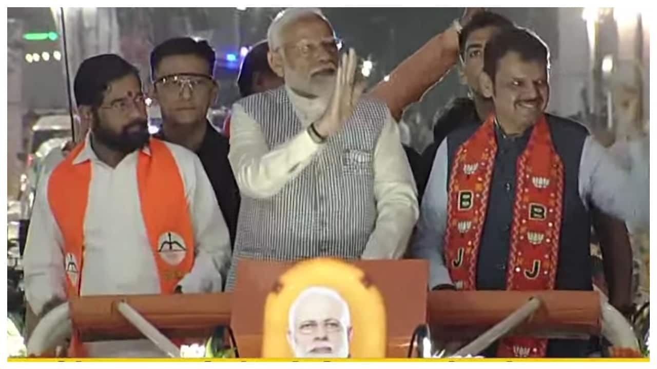 PM Narendra Modi conducted a roadshow along with Maharashtra CM Eknath Shinde and Deputy CM Devendra Fadnavi in Mumbai's Ghatkopar region.