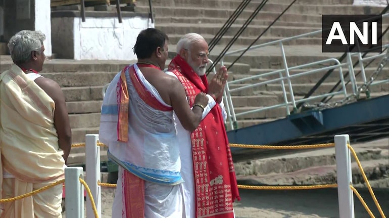 Prime Minister Narendra Modi offered prayers at the Dashashwamedh Ghat on the banks of the river Ganga (PTI Photo)