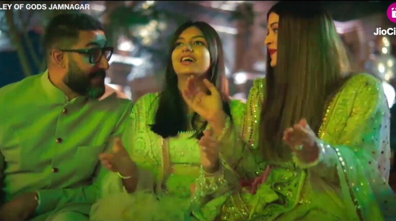 The film offers a glimpse into the star-studded festivities, featuring Bollywood icons like Abhishek Bachchan, Aishwarya Rai Bachchan, and their daughter Aaradhya, among many others. The trio was seen enjoying the occasion, with Abhishek and Aishwarya twinning in beige outfits while seated together, accompanied by Aaradhya, who spent quality time with her parents.
