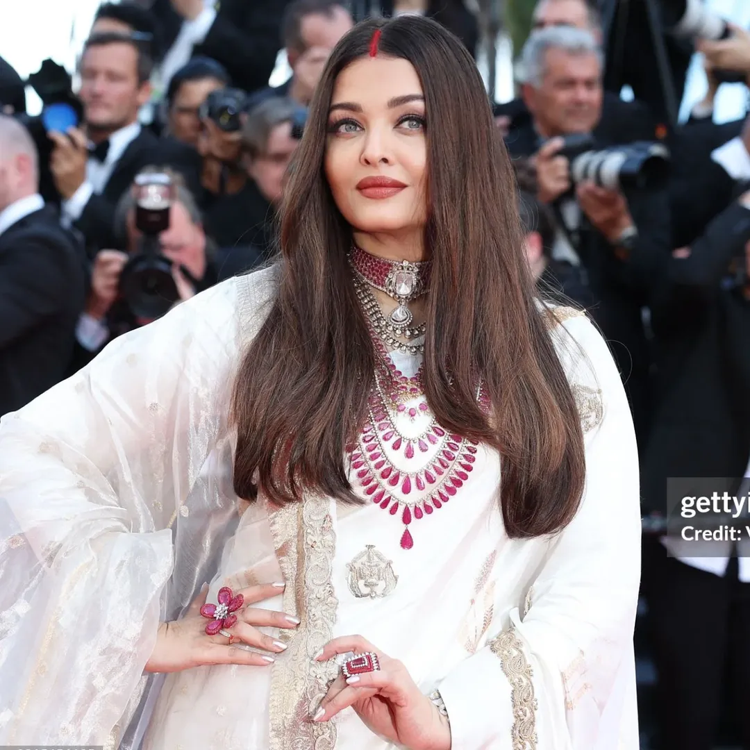 Aishwarya’s traditional sindoor in the center parting added a touch of Indian sentiment to her global red carpet appearance.