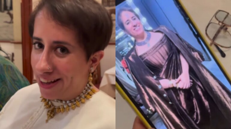 Guneet further explains in the video that she is excited that its a corset along with a saree and an overcoat. The all brown ensemble looks gorgeous. She is further heard saying, "This didn't even exist in my vocabulary that I can also have an afterparty outfit. So Manish went on to make two outfits in the same hand-woven fabric and I can't believe it."