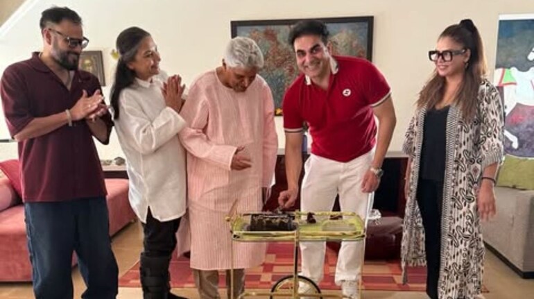 To share her joy, Shabana posted a picture featuring herself, Javed Akhtar, and a beaming Arbaaz Khan, who was seen smiling as he cut a cake.