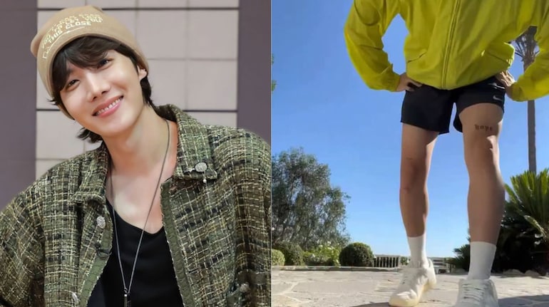 J-Hope danced in front of a picturesque backdrop while sporting a casual yet stylish outfit that included sneakers, shorts, white socks and a neon training jacket. However, the ink was the main attraction.
