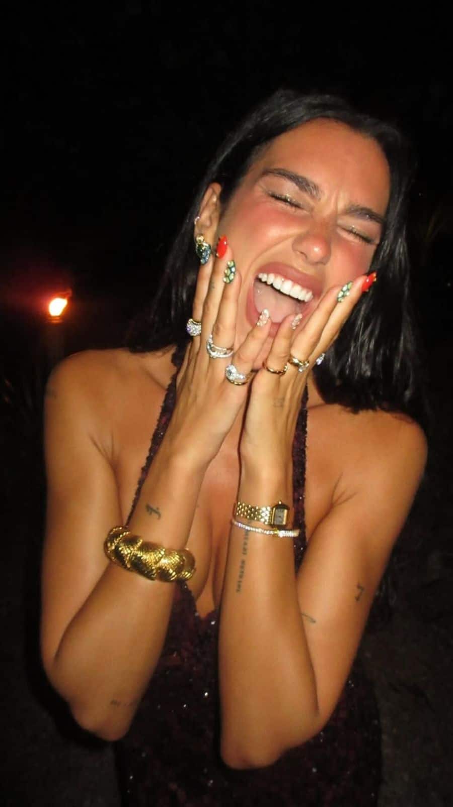 Dua kicks off her 30th with a playful kiss — the perfect way to set the mood for the night.