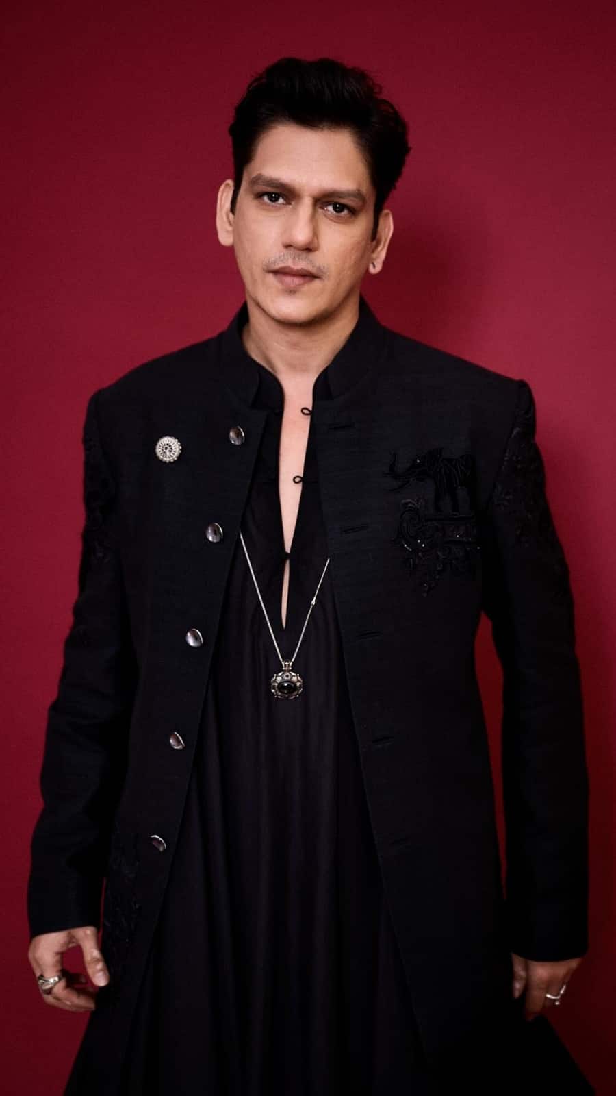 Vijay Varma sported an all-black outfit, looking stunning in a long blazer over a kurta and cowl-style black kurti. He truly showcased his impeccable fashion sense.