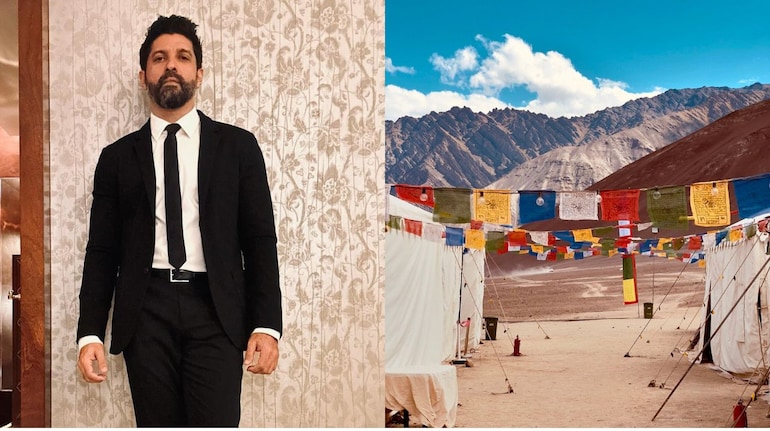 The behind-the-scenes images shared by Farhan on social media highlight the breathtaking beauty of Ladakh. The first shot features a tranquil arrangement of tents set against the backdrop of majestic mountains, illuminated by soft morning light, creating a dreamlike ambiance. The second image provides a glimpse from inside his tent, showcasing the stunning landscape and serene surroundings that have already enchanted fans.