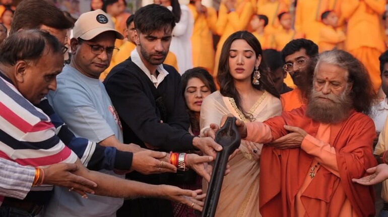 Producer Vinod Bachchan took to his Instagram and shared glimpses from the Dev Bhoomi. The crew can be seen performing the aarti in a series of photos. They also posed together with Pujya Swami Chidanand Saraswati for a group photo.