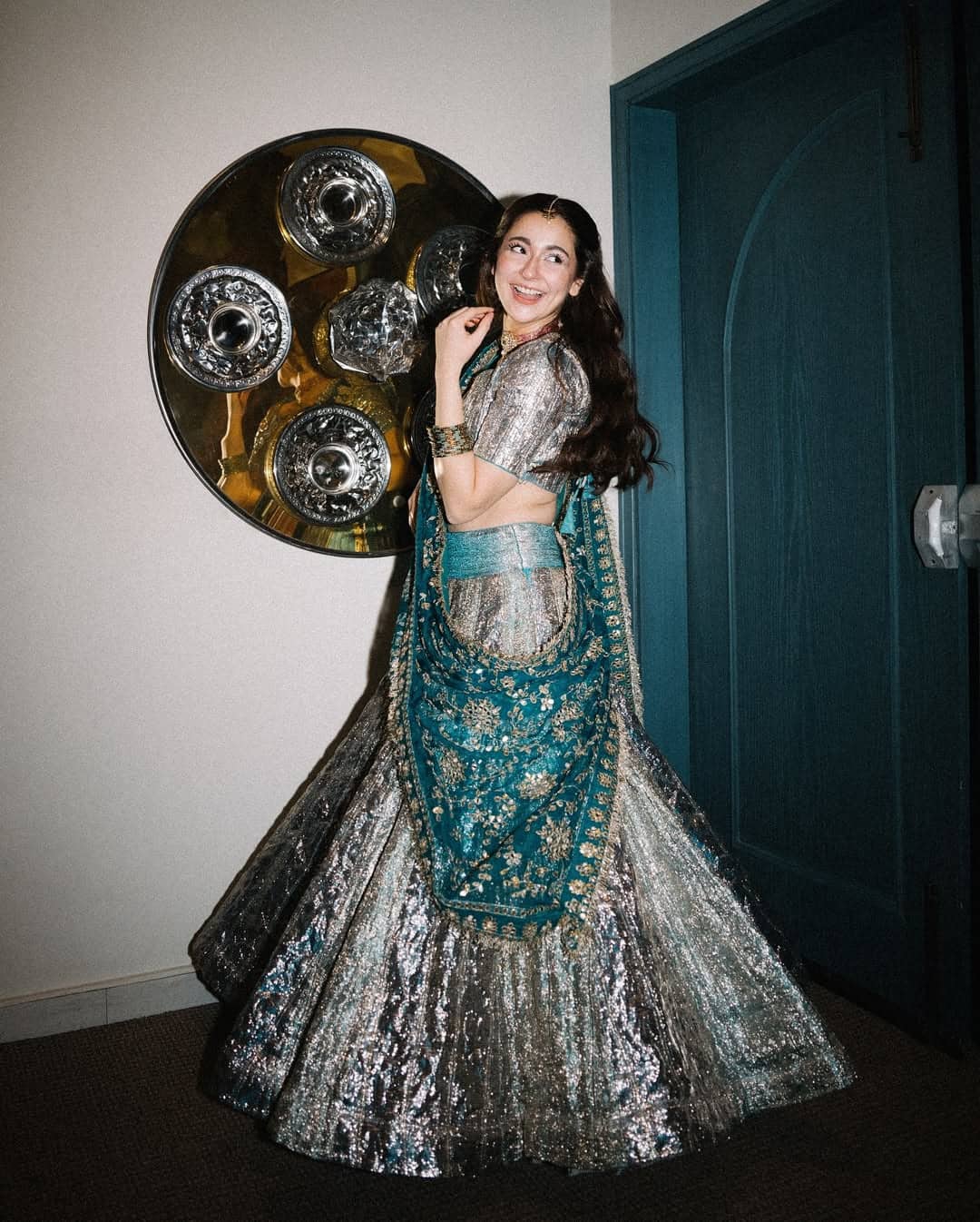 Hania looks beautiful in the mustard yellow lehengawith silver work. Whether in a sleek saree or a flowing lehenga, her outfits are always perfectly fitted, highlighting her figure in a way that’s both flattering and graceful.