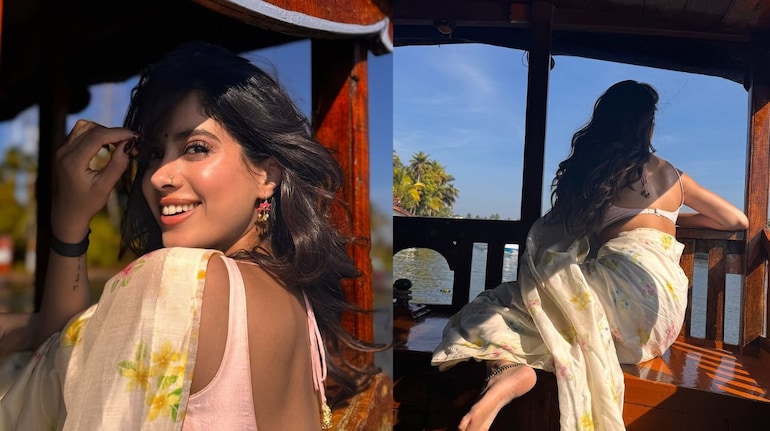 In the photos, Janhvi Kapoor is seen donning a beautiful white saree adorned with delicate floral patterns, perfectly complemented by a vibrant pink blouse.