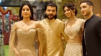 At the grand Anant Ambani and Radhika Merchant wedding, held with lavish grandeur, the spotlight was on the celebrities gracing the red carpet. Among them were siblings Janhvi and Khushi Kapoor, who posed elegantly alongside Shikhar Pahariya and Vedang Raina, painting a happy picture that highlighted the event's glamour.