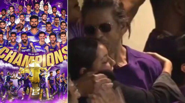 KKR co-owner Shah Rukh Khan celebrated the victory with visible emotion. In a touching moment, he hugged and kissed his wife, Gauri Khan, showing his joy and pride in the team's achievement.