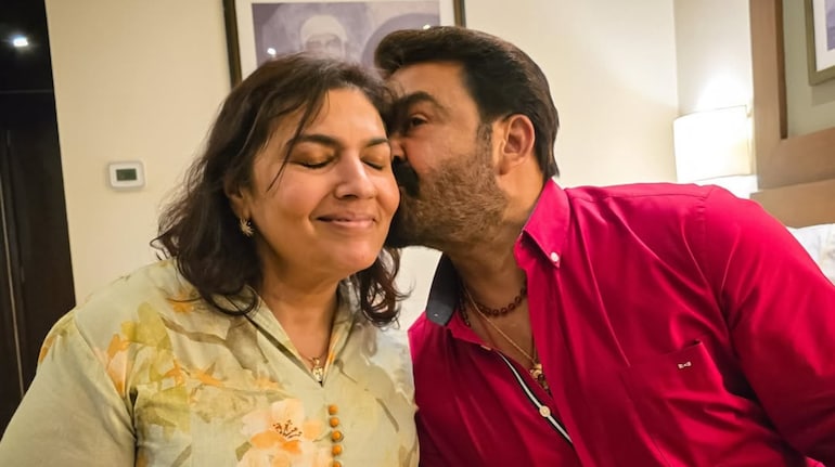 In the heartfelt post shared on his X account, Mohanlal expressed his love for his wife, writing, “Happy Anniversary Dearest Suchi. Forever grateful for you, forever yours.” The image captured a sweet moment where the actor lovingly kisses Suchitra on the cheek, radiating warmth and affection. The couple, who tied the knot in 1988, have since built a beautiful life together and are parents to two children, Pranav and Vismaya.