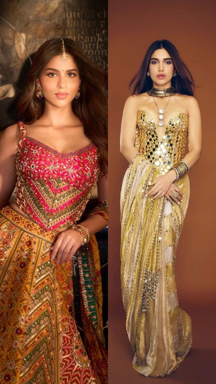 Suhana shows how to drip in vibrancy by donning a multi-coloured lehenga with mirror accents all across the outfit, serving a look that’s festive and traditionally stylish. She lets the outfit take centre stage by opting for selective accessories.
