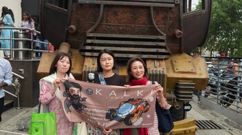 The "Kalki" fever has even captivated fans from Japan, who traveled to India to experience this ultimate cinematic event firsthand. A glimpse of this fervor was shared on the official "Kalki" social media handle, X. The post featured a poster of three enthusiastic Japanese fans posing beside the Bhairava monster truck, proudly holding a specially designed flag.