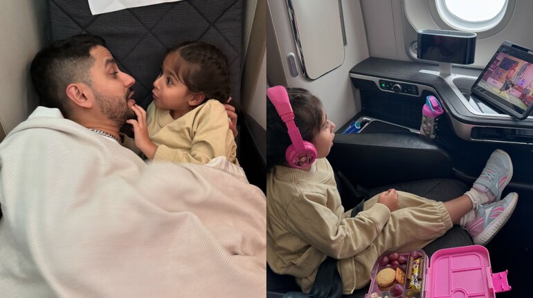 Soha documented their airborne adventure on Instagram, sharing a delightful series of photos capturing Inaaya's activities. From cozying up with her dad to engrossing herself in books and cartoons, to savouring delicious snacks, Inaaya made the most of her time in the air.