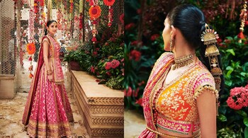 Manish Malhotra shared a series of breathtaking photos on social media, showcasing Radhika in the exquisite attire. "Gorgeous Radhika Merchant starts her Wedding functions looking stunning in a custom made vibrant bandini lehenga : Rai bandhej on a banarasi brocade in Rani pink. Classic embroidery in gold taar zardosi. Durga Maa shloka embroidered in the borders. 35 Mtrs of bandhej used to make the Ghagra. Blouse inspired by a vintage Koti.” he wrote.