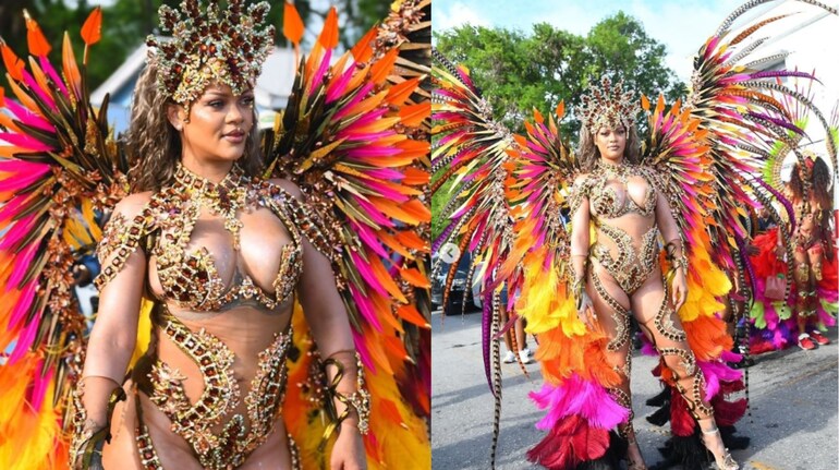Making a grand entrance, the Fenty Beauty founder wore a full-body costume lavishly adorned with jewels. The dress was made with vibrant, multi-coloured wings in shades of pink, orange, and yellow, paired with a matching headpiece, embodying the festival's spirited and colorful essence.