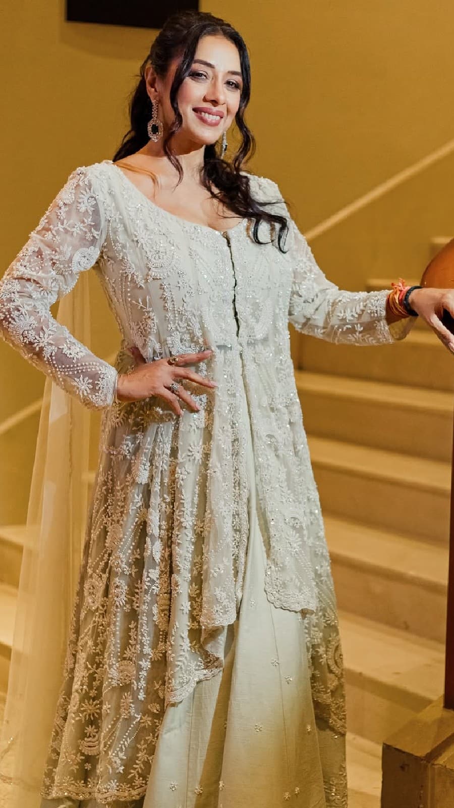 Rupali was dressed in an open jacket lehenga kurti set with pearl embroidery and she looked every bit enchanting.