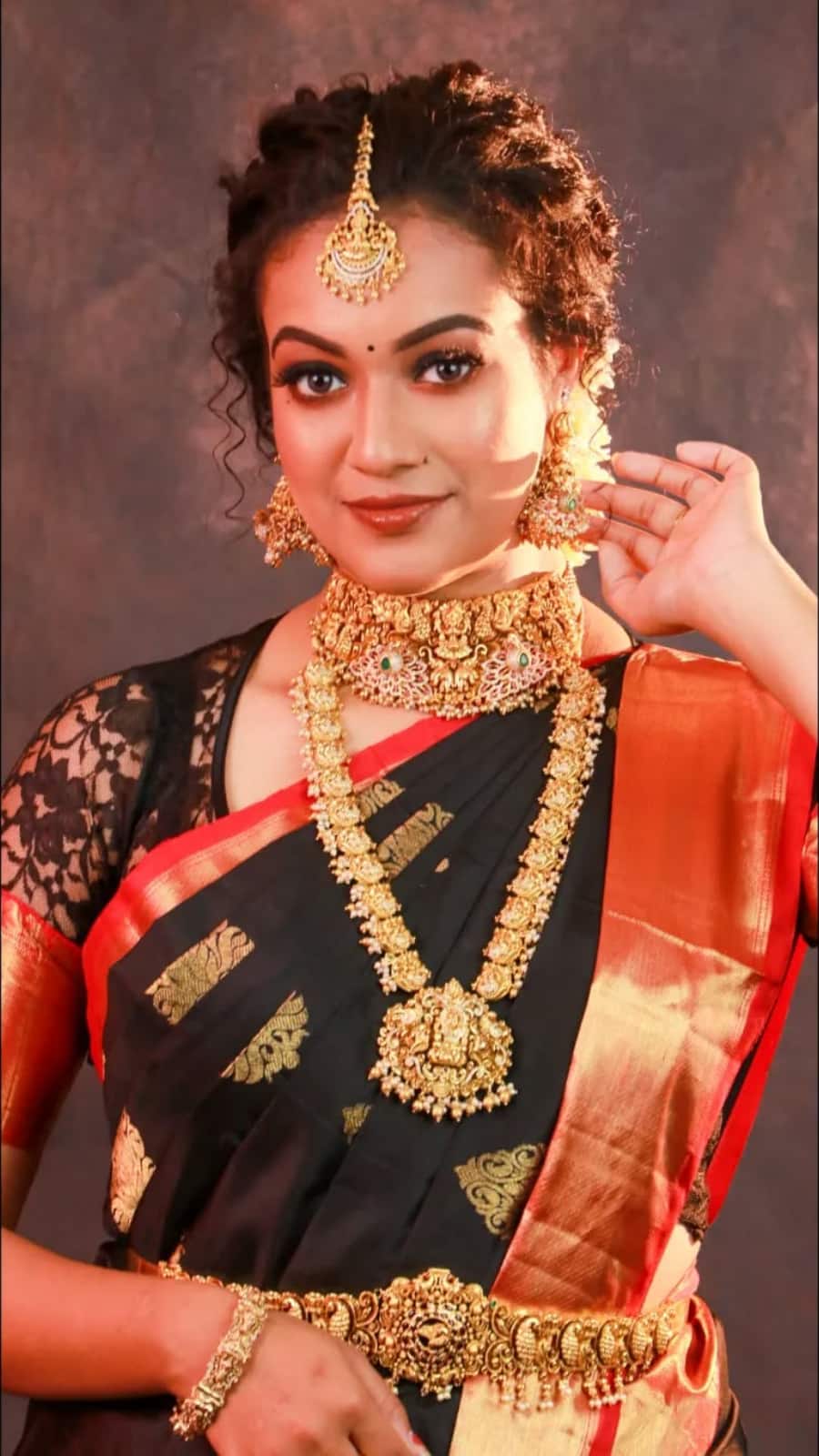While staying true to traditional styles, Shruthi often adds a modern flair, like belted sarees or statement accessories, making her look contemporary yet rooted.