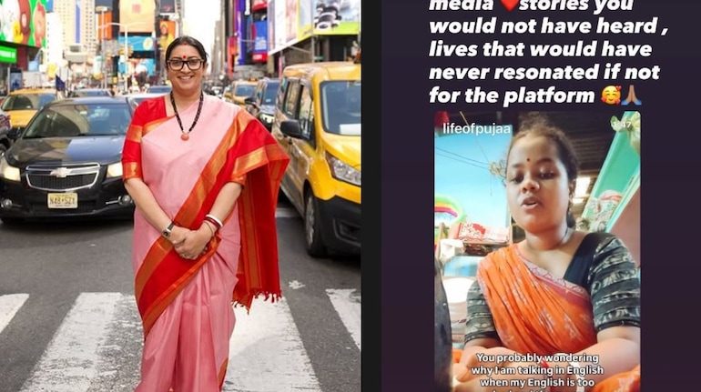 Taking to her Instagram Stories, Smriti shared a reel featuring a woman, with the user name 'lifeofpooja', from a village in India who was speaking in English. In the video, the woman admits she cannot speak fluent English but still tries her best, expressing her wish for the video to reach many people.