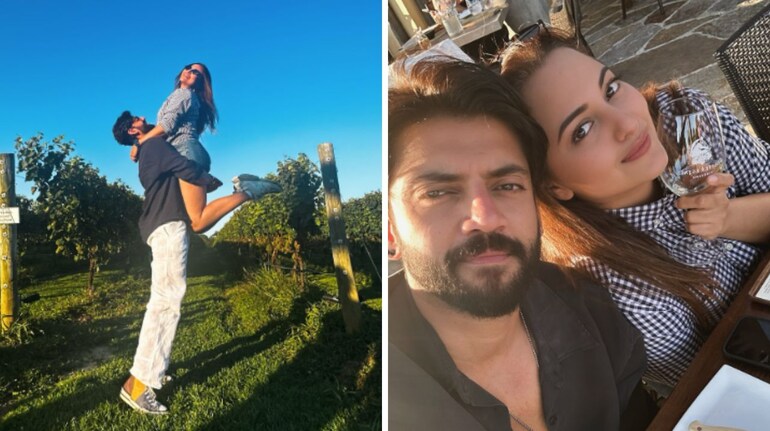 In one of the pics, Zaheer has lifted Sonakshi in his arms at a wineyard in New York. There are two sun-kissed pics of the couple too, having lunch at a restaurant.
