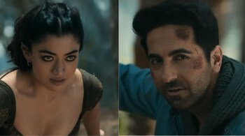 The makers unveiled the teaser of Thama today through Maddock Films’ official YouTube channel, creating an immediate buzz among audiences. The teaser opens in a haunting forest setting, where Ayushmann Khurrana and Rashmika Mandanna are seen together. A voice asks, “Raha paogi mere bina? 100 saal tak (Can you live without me for 100 years?)" to which the reply comes, “100 saal to kya, ek pal ke liye bhi nahin (Not even for a moment)"