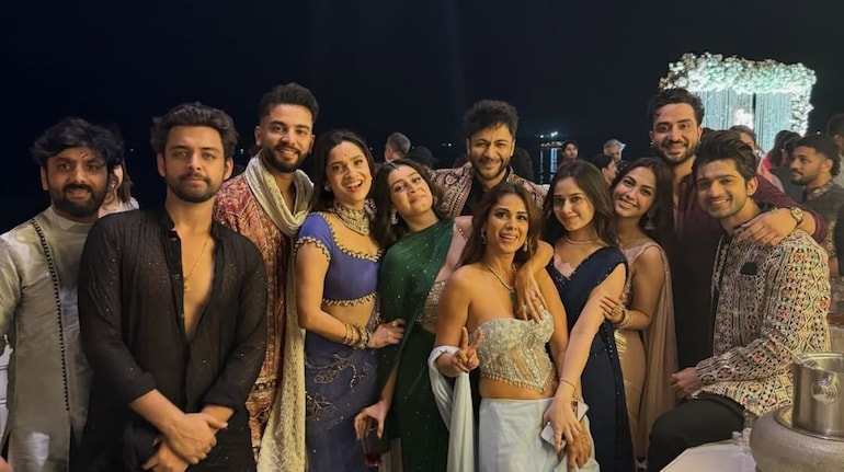 Isha Malviya dazzled in a mirror work crop top with an emerald dhoti buttom. As for Nia Sharma, she looked all things elegant and gorgeous as she lit up her sequined tube top and drape skirt with her smile.