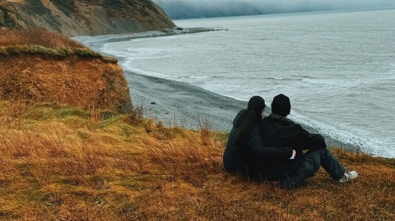 Taking to his Instagram, Vicky Kaushal shared a touching photo with his wife, Katrina Kaif on Friday. The couple is seen sitting together on a serene seashore, their backs to the camera as they take in the stunning natural surroundings.