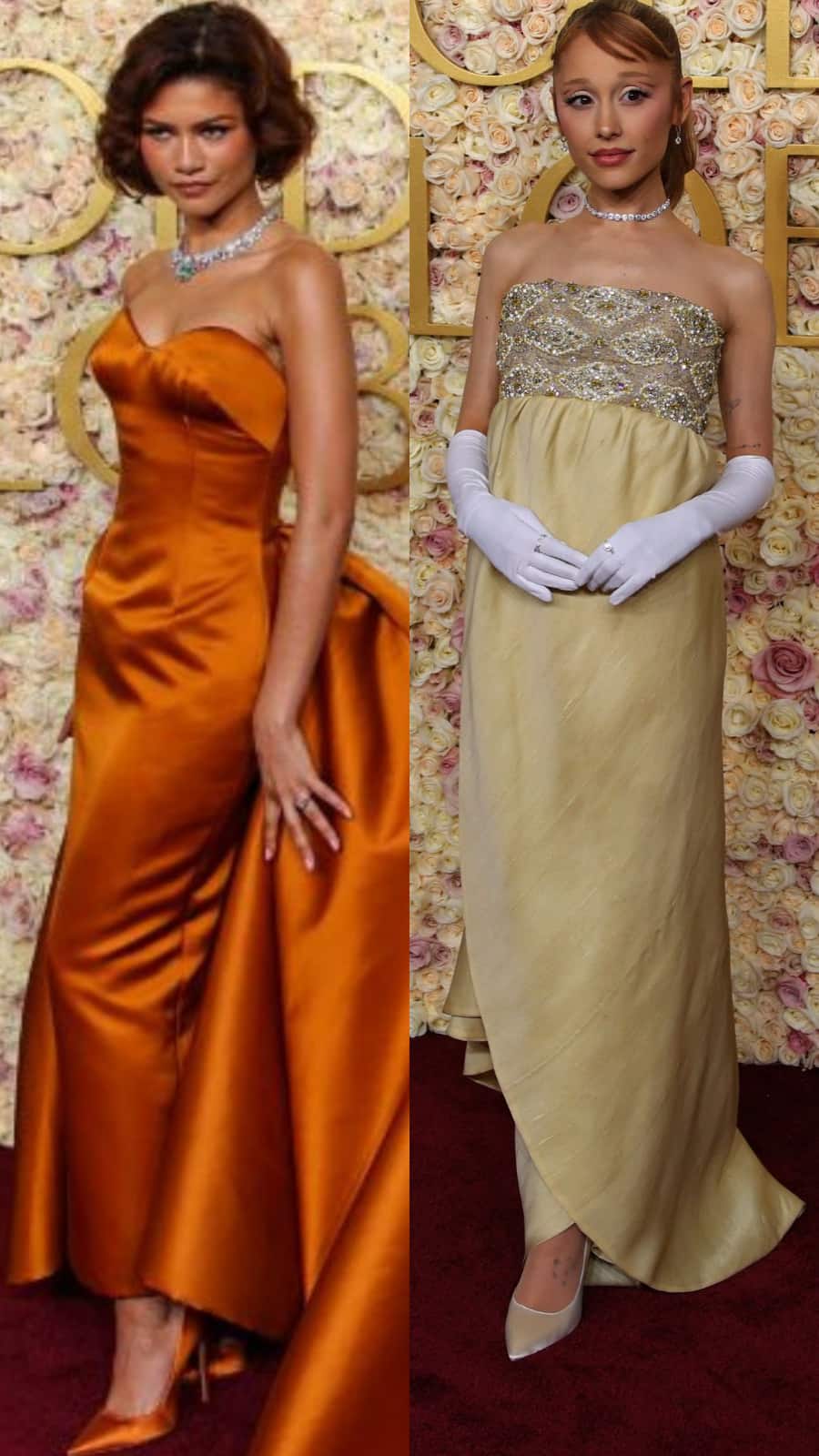 Style Queen Zendaya wore a beautiful burnt orange Louis Vuitton as she walked the red carpet. Her engagement ring though stole the show.