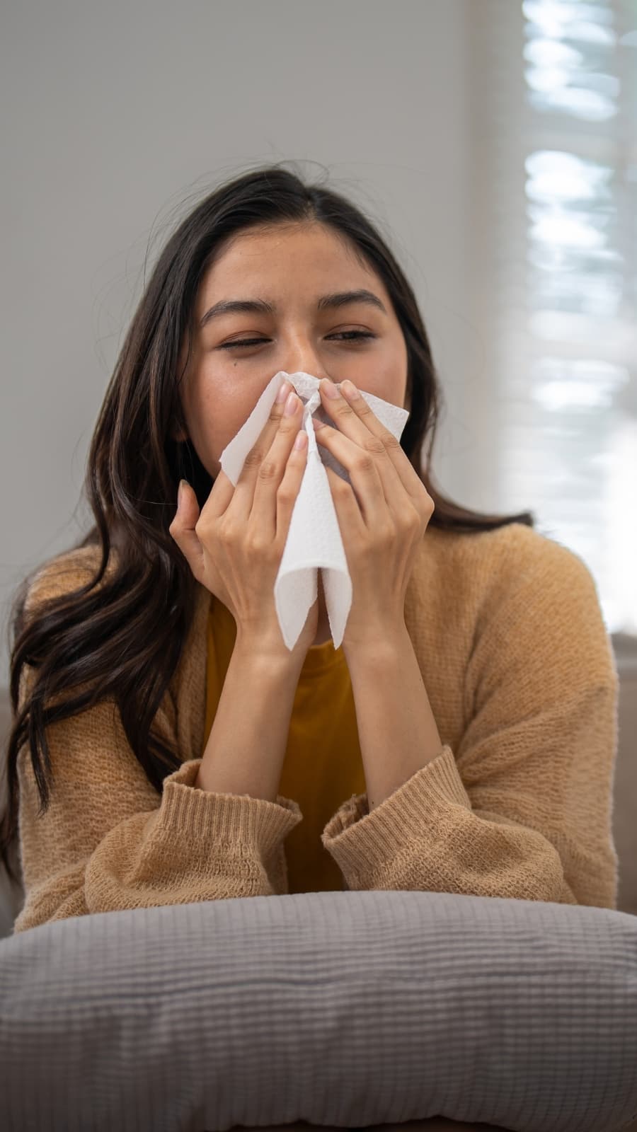 Cough or sneeze into a tissue, then throw it into a bin. If you do not have a handkerchief or a tissue, use your elbow