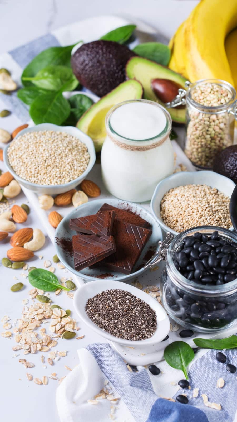 Magnesium is found in plant and animal foods like spinach, legumes, nuts, seeds, whole grains, and fortified cereals, which are healthy