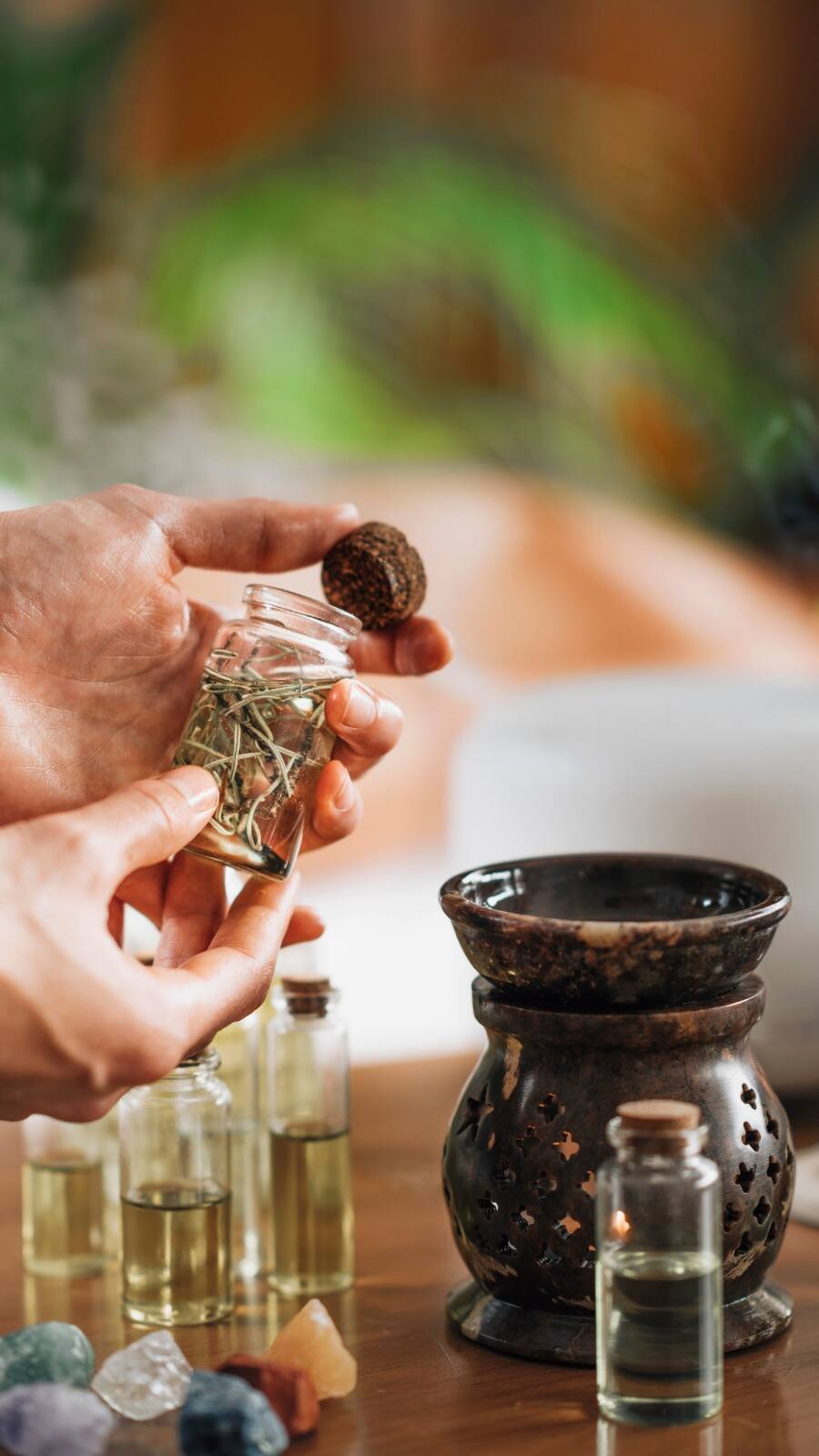 A daily self-massage with Ayurvedic oil (taila abhyanga) improves circulation, calms the nerves, and leaves both mind and body feeling grounded and energised