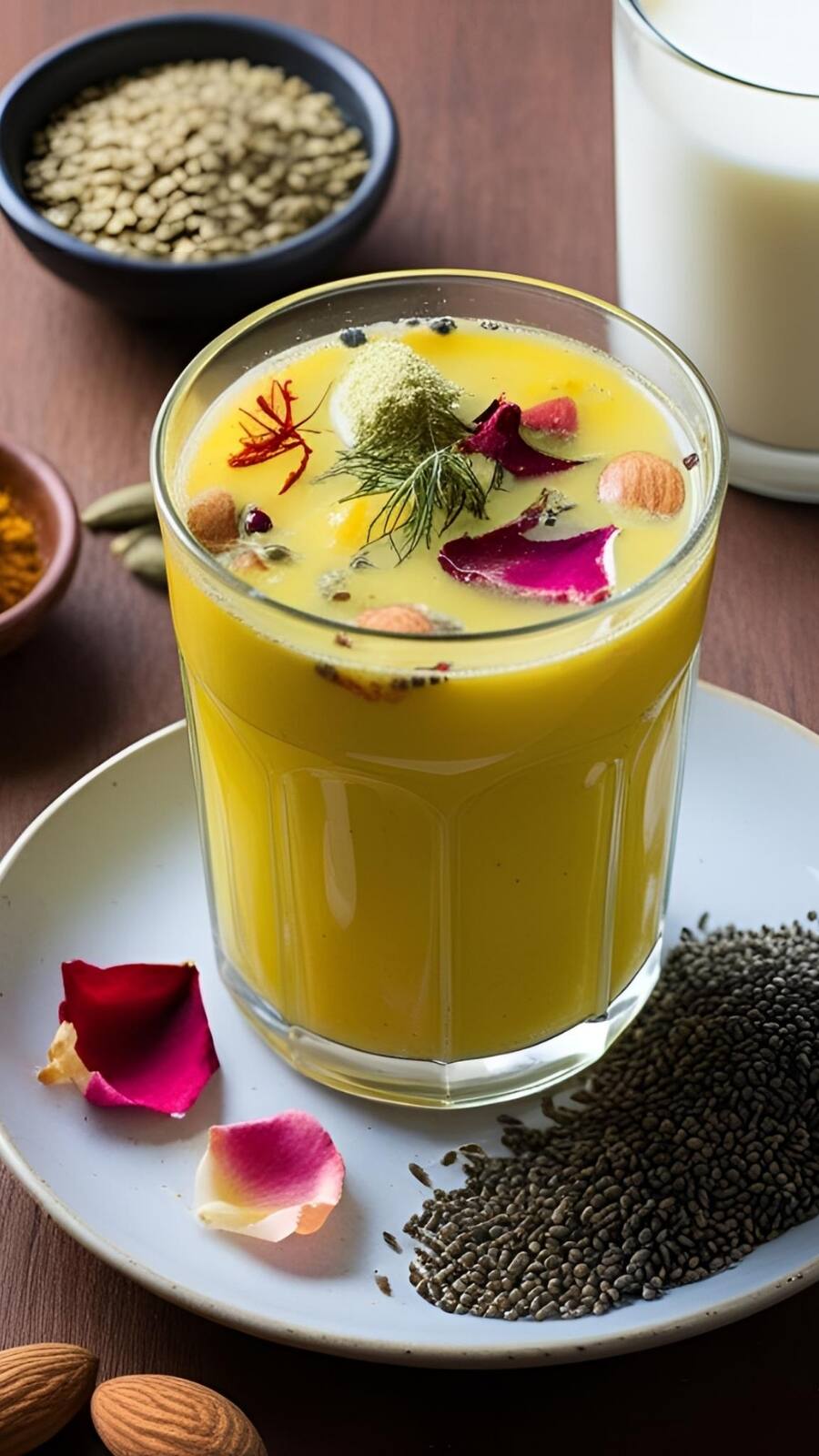 Thandai’s cooling properties, from ingredients like rose petals and nuts, help regulate body temperature during the hot weather