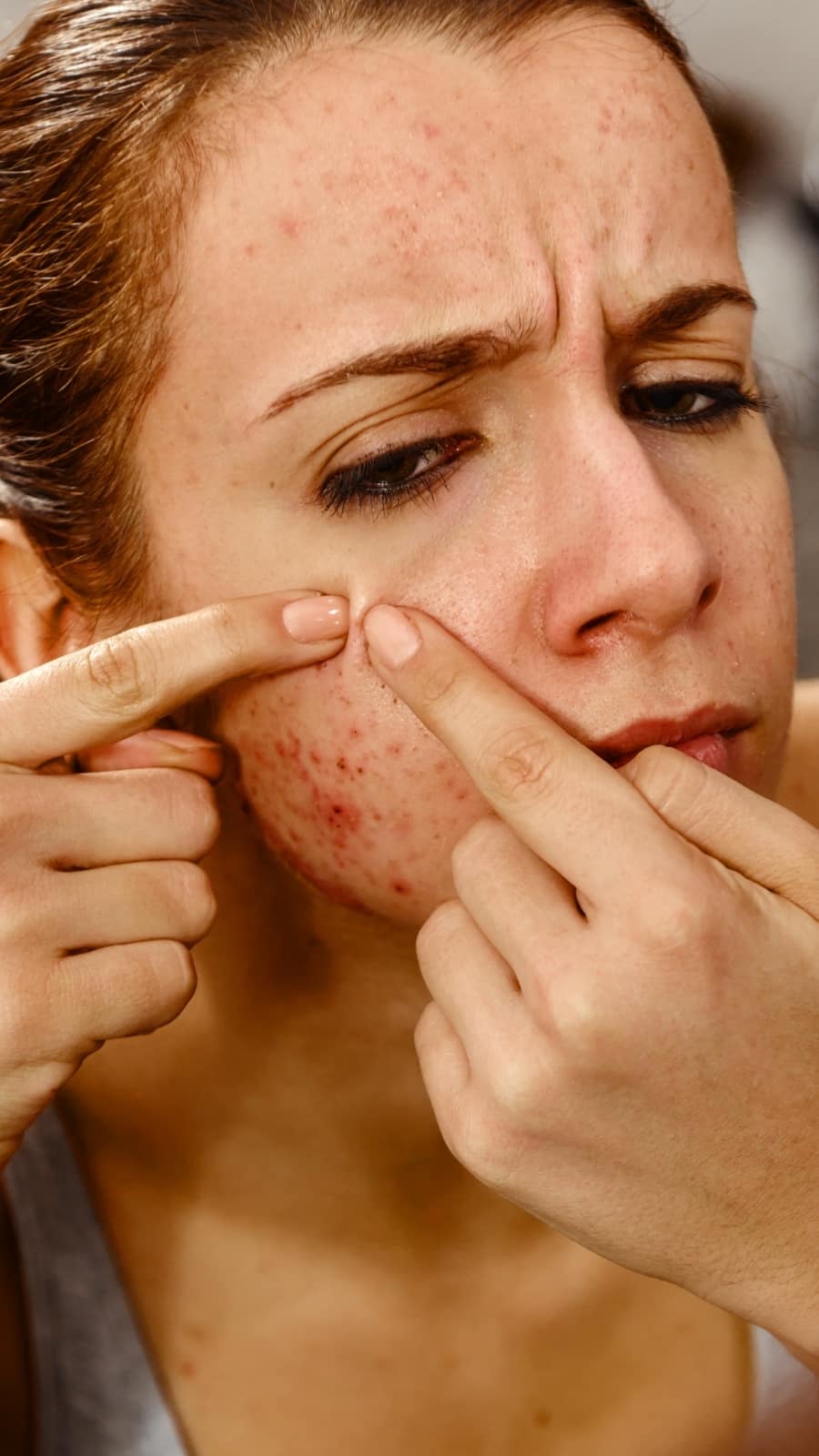 Due to the excessive testosterone, females with PCOS are likely to have frequent breakouts with pimples on the body. Treating the hormonal imbalance helps to keep acne in check