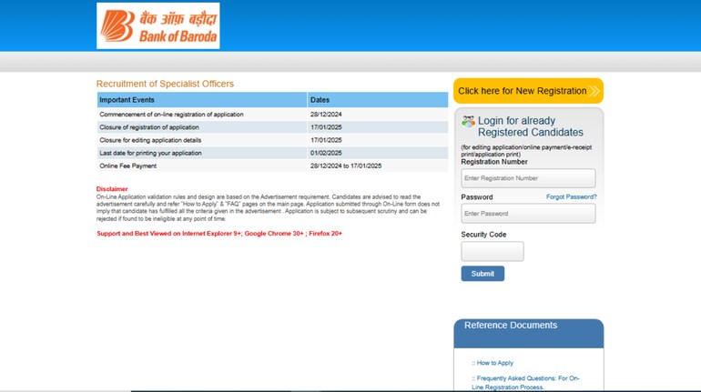 The last date to apply for the Bank of Baroda SO Recruitment 2025 is 17 January 2025. The selection process includes an online examination, a group discussion, and a personal interview.